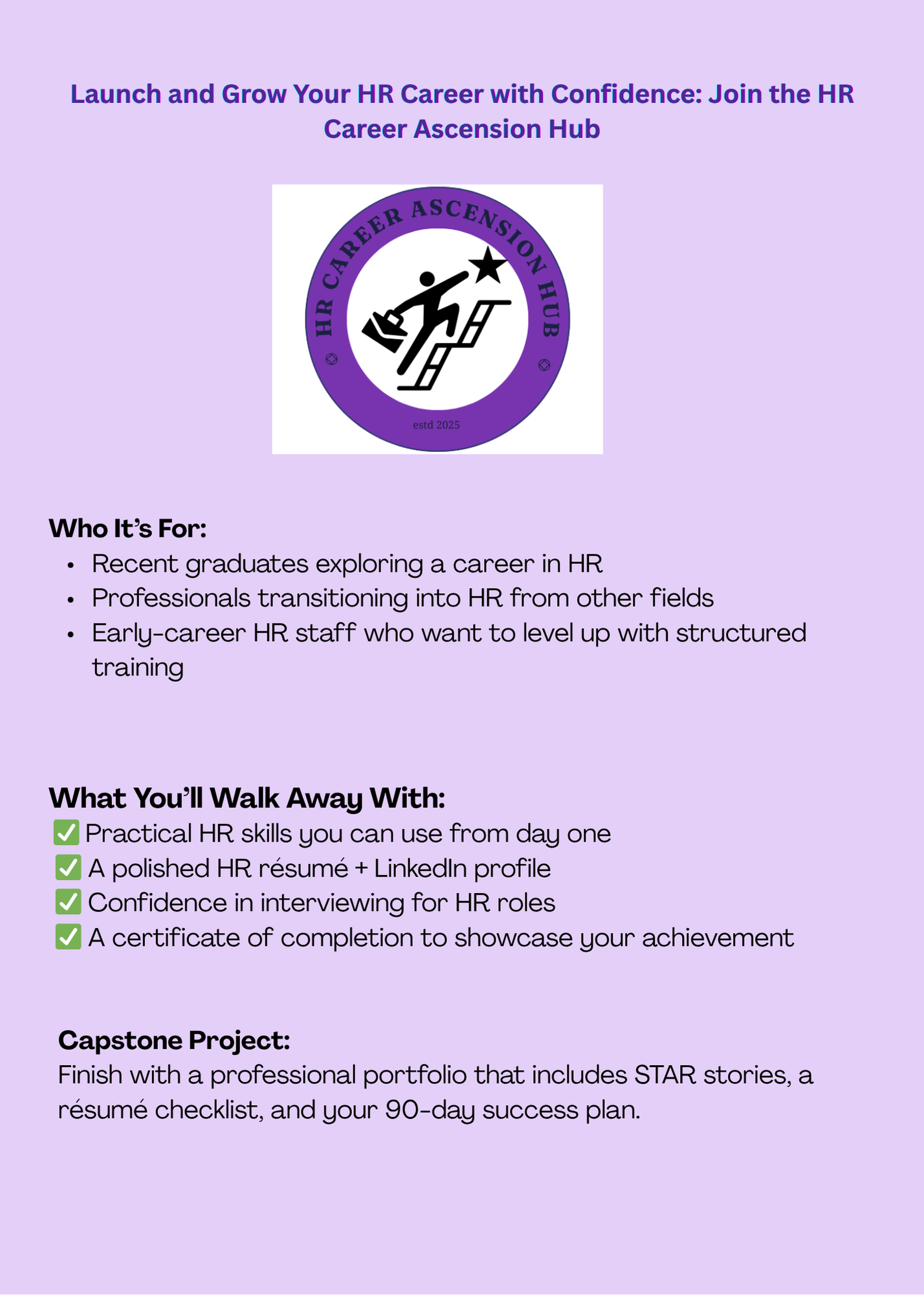 - A polished HR résumé + LinkedIn profile