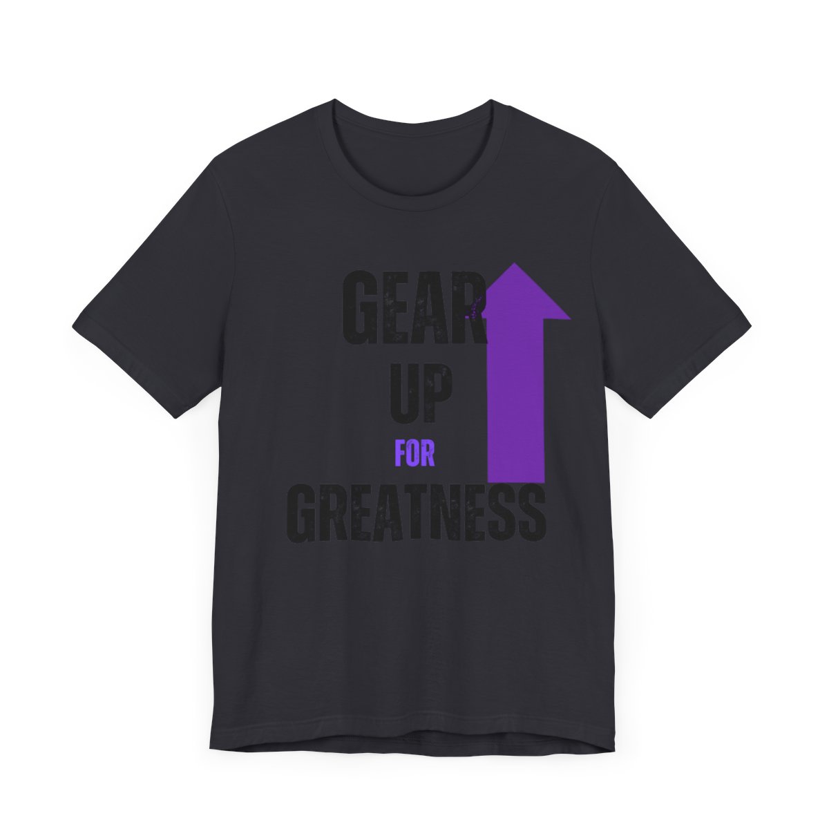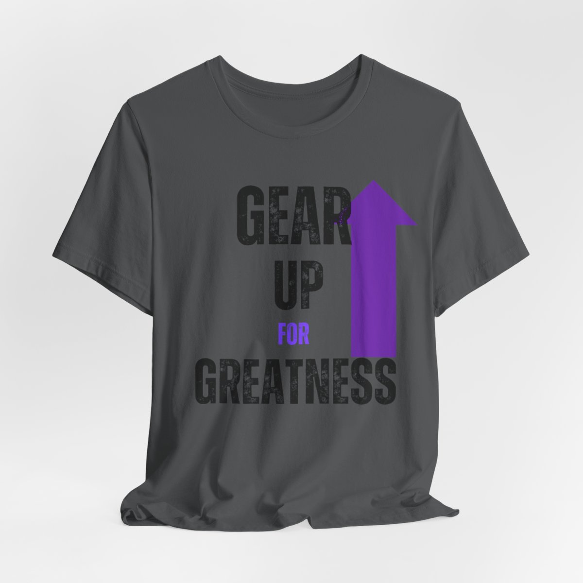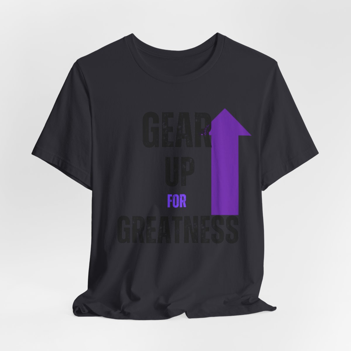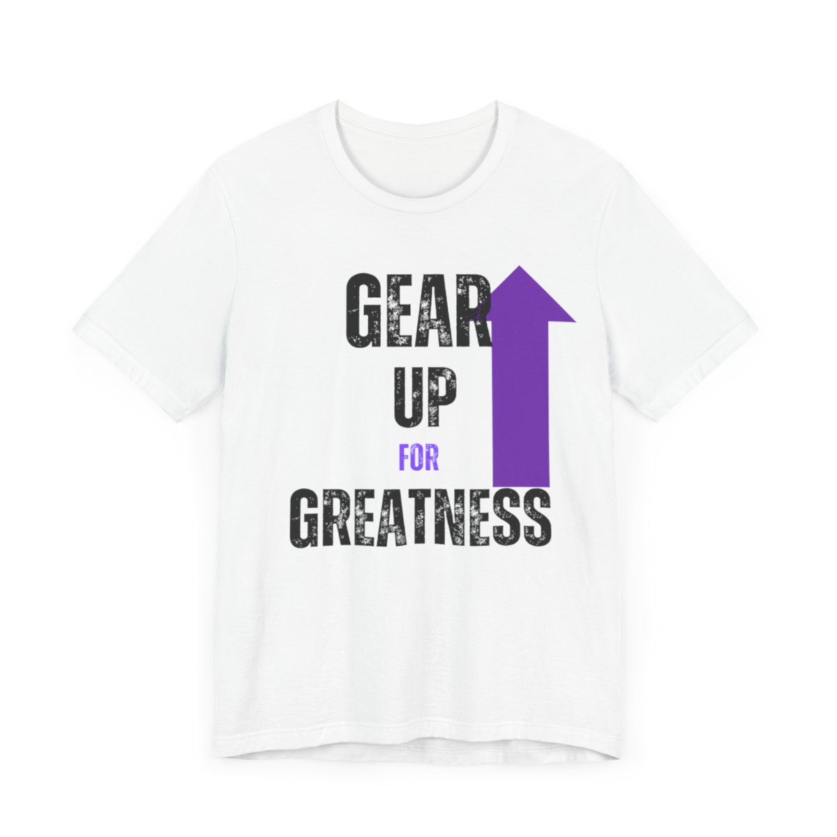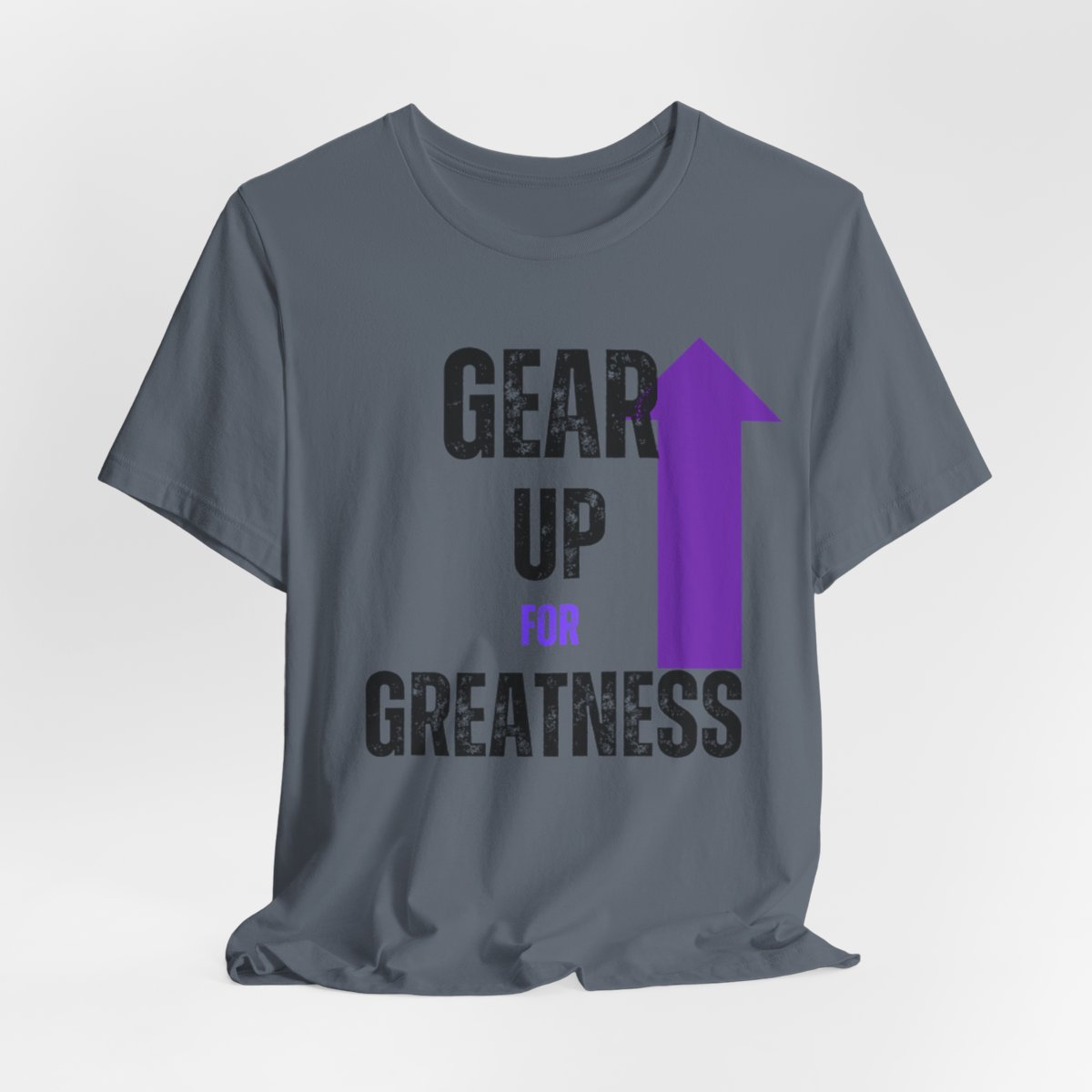 Design: The text is arranged in a stacked formation, with “GEAR UP” on the top line and “FOR GREATNESS” beneath it. The font is modern and easily readable, while a slight distressed texture adds character.