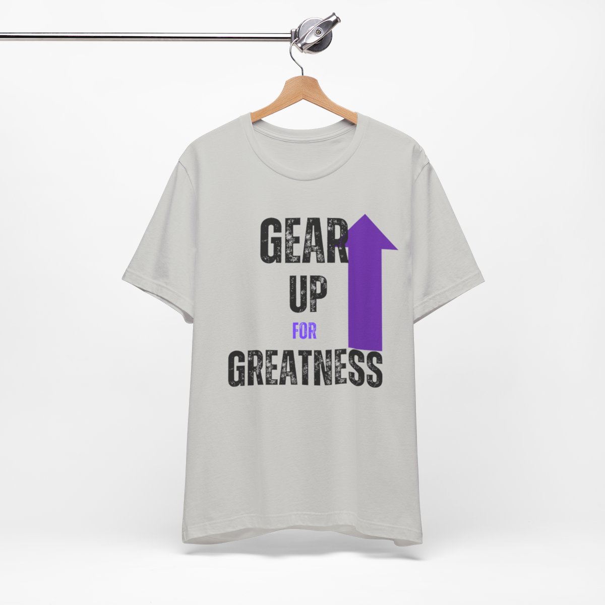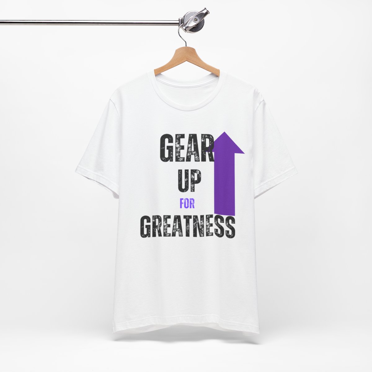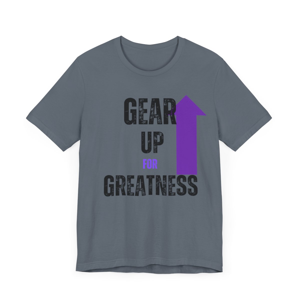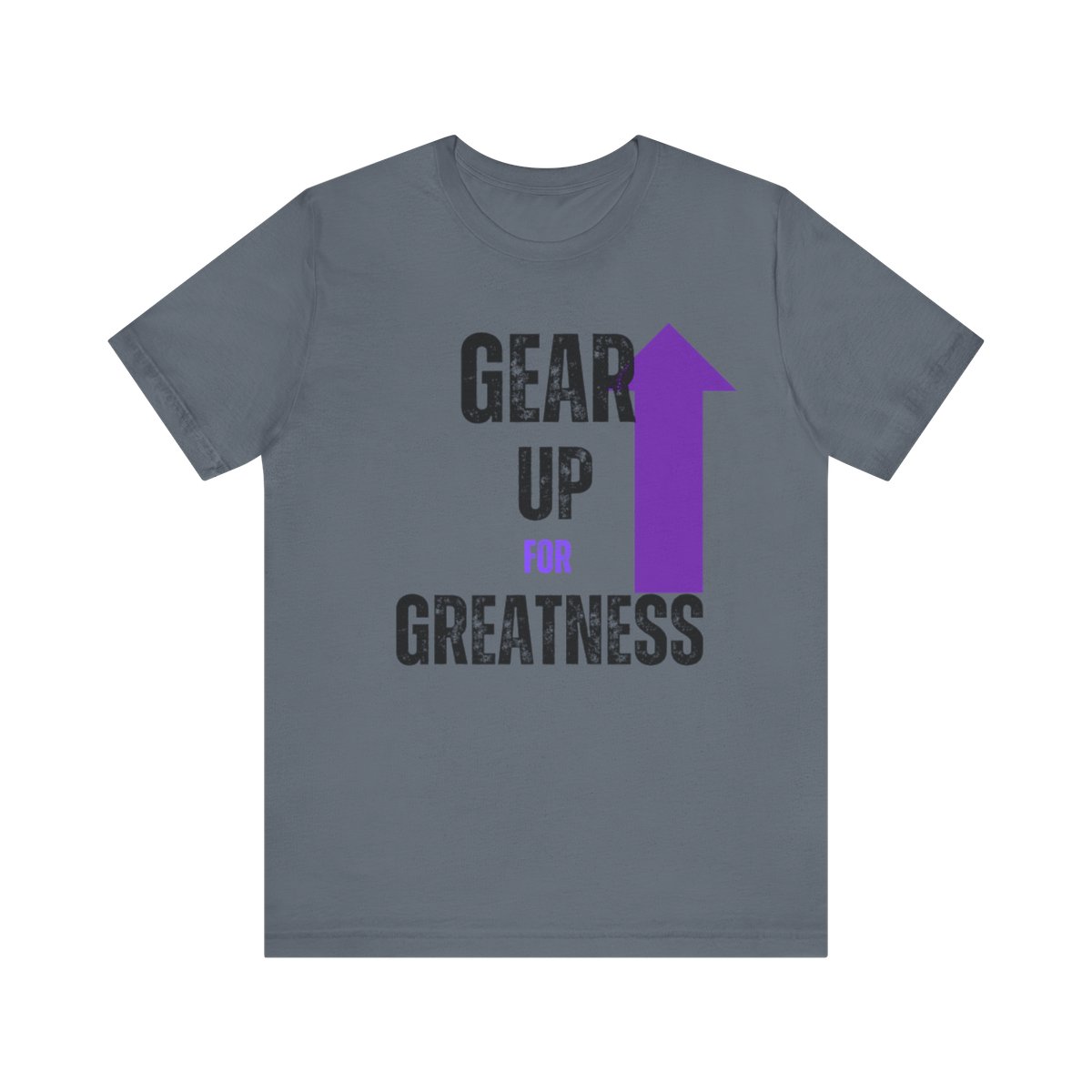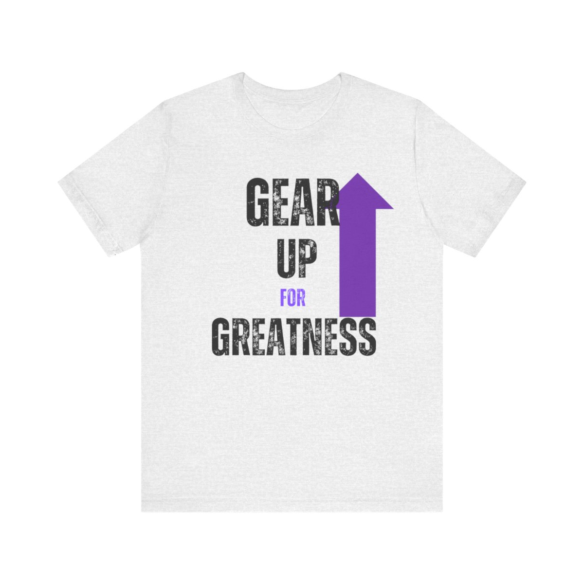 Design: The text is arranged in a stacked formation, with “GEAR UP” on the top line and “FOR GREATNESS” beneath it. The font is modern and easily readable, while a slight distressed texture adds character.