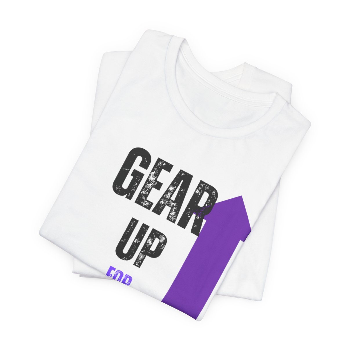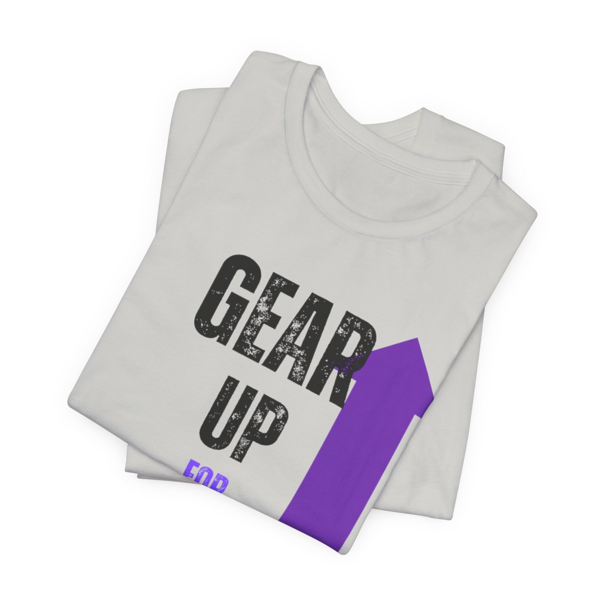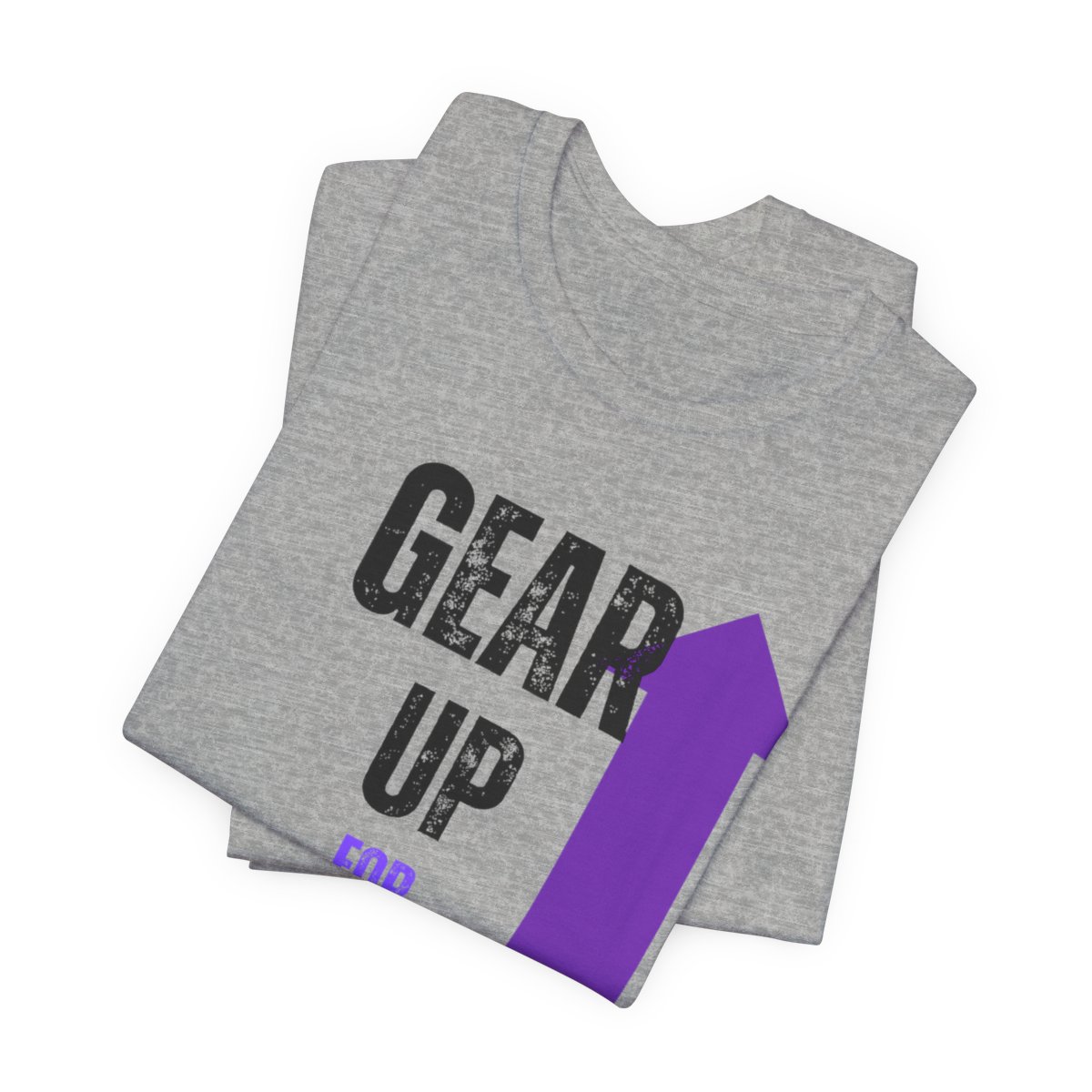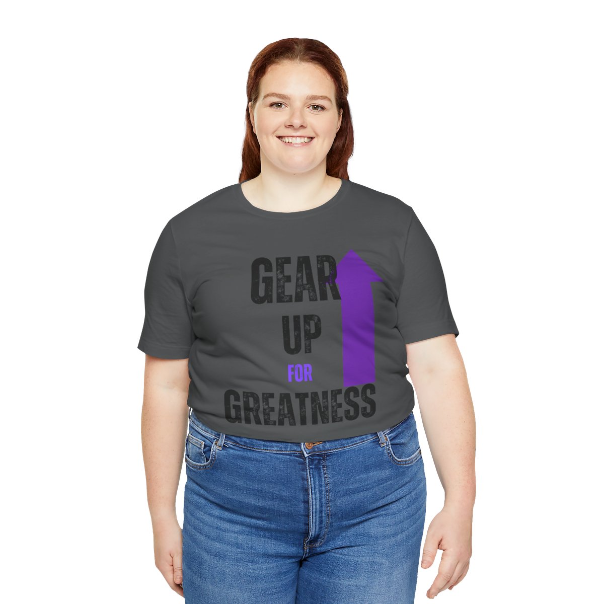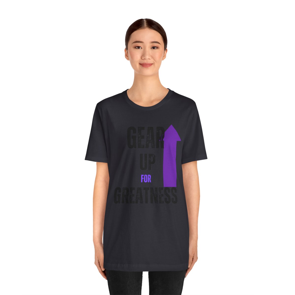 Design: The text is arranged in a stacked formation, with “GEAR UP” on the top line and “FOR GREATNESS” beneath it. The font is modern and easily readable, while a slight distressed texture adds character.
